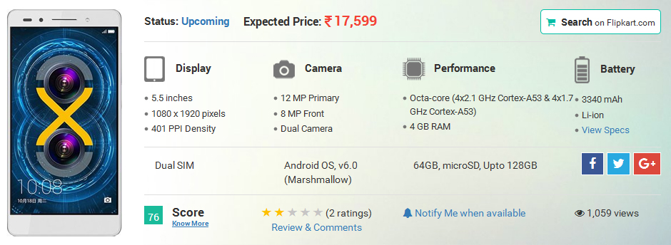 Coming to the specifications, the Honor 6X smartphone features a 5.5-inch full-HD (1080×1920 pixels) display with 2.5D curved glass on top. The device is accelerated with Kirin 655 octa-core processor coupled with Mali T830 MP2 GPU. It comes 3 GB RAM/32 GB storage and 4 GB RAM/64 GB storage variants. It runs on Android 6.0 Marshmallow OS wrapped under EMUI 4.1. The smartphone is backed by 3340mAh battery with fast charging support. It is a 4G VoLTE mobile with a dedicated fingerprint sensor on the rear panel.