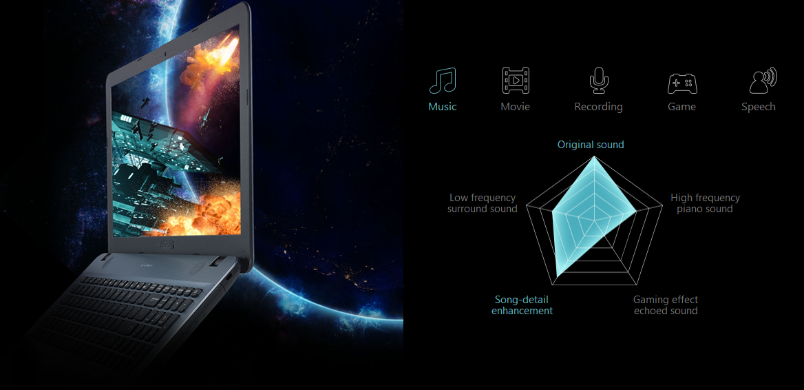 In addition, the VivoBook Max X541 has a unique feature called Asus Splendid Technology which allows users to choose three picture modes- normal, vivid, and eye care mode. It also has the Asus Tru2Life video technology for superior visuals and the SuperBatt tech on it ensures three times longer battery life. It has twin 3W speakers equipped on it which offer a rich, clear, deep baseline, and distinct vocals. The connectivity options on the device include USB Type-C connector, USB 3.1, USB 3.0, USB 2.0, HDMI, and VGA ports.