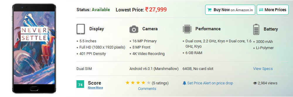 Also, OnePlus 3, launched in June this year, is difficult to beat in terms of configuration. All three smartphones have premium looks, great features and a price under Rs.30000. Let’s compare the three smartphones to find out the best one.