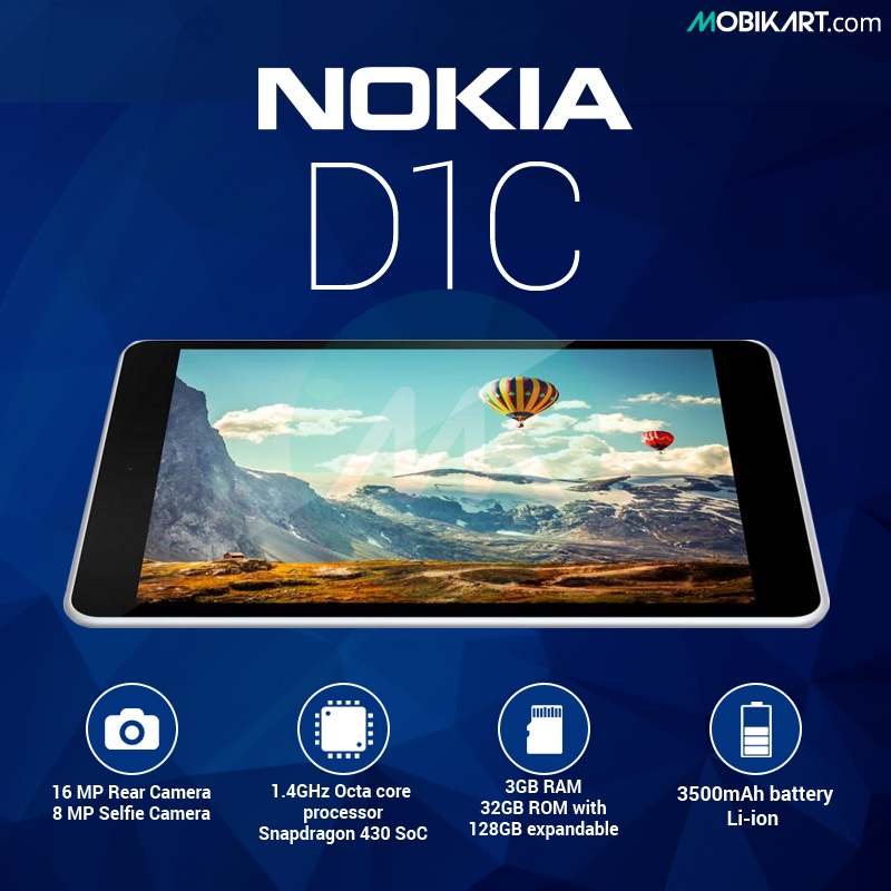 A few days later,  Nokia D1C was again spotted AnTuTu Benchmark followed by Geekbench which enlightened some detailed specifications of the Nokia D1C. According to AnTutu, Nokia D1C will be powered by Qualcomm 430 Processor paired with Adreno 505 GPU and it will run on Android 7.0. This device showed a 1920 x 1080 pixels resolution which is commonly possessed by a mid-range smartphone. In terms of camera, Nokia D1C is supposed to enclose a 13MP rear and an 8MP selfie camera. It will mark a good 3GB RAM and internal memory of 32GB. Thus, considering the specifications spotted on AnTuTu, Nokia D1C was supposed to be a Smartphone with a reasonable price tag.